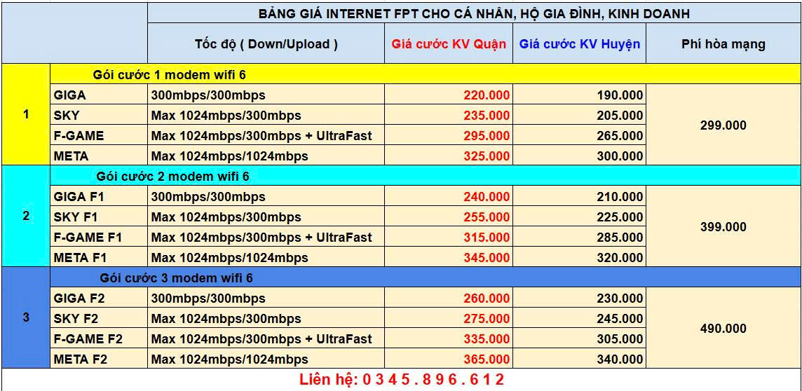 I. BẢNG GIÁ LẮP ĐẶT INTERNET FPT